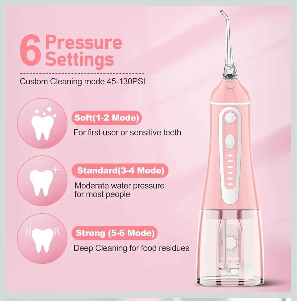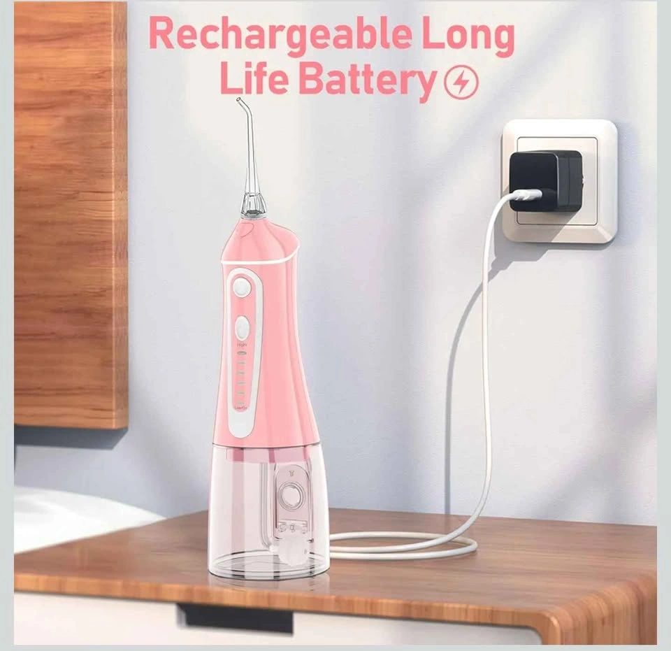 Water Dental Flosser Pick for Teeth, Grinest Cordless Water Dental pik Teeth Cleaner 7 Modes Rechargeable Oral Irrigator Portable IPX7 Waterproof Tooth flossing Cleaning for Home Travel-Pink