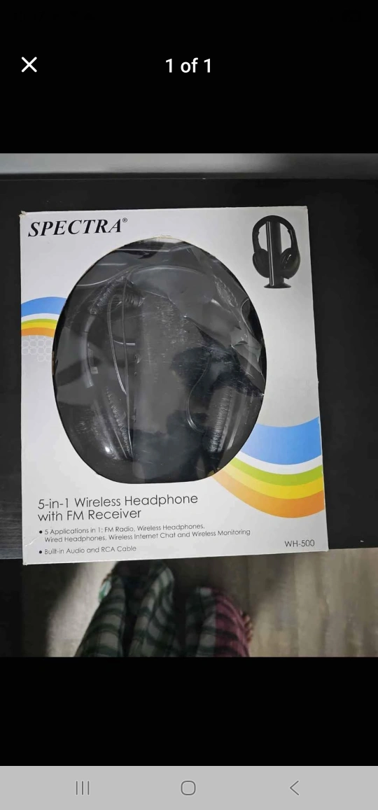 Selling a Spectra 5-in-1 wireless headphone with FM receiver, model WH-500. It comes with built-in audio and RCA cable. It has 5 applications in 1: FM Radio, Wireless Headphones, Wired Headphones, Wireless Internet Chat and Wireless Monitoring
