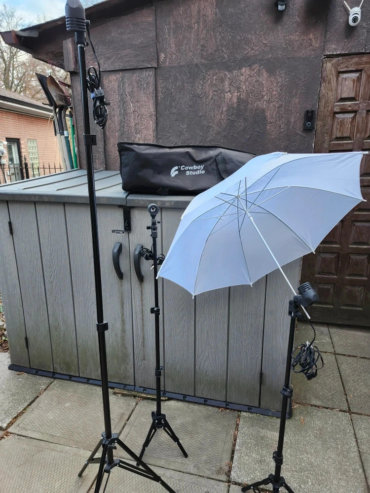 Get ready to light up your photos with this Cowboy Studio photography lighting kit! It includes the light stands, umbrella, and carrying bag to keep everything organized and portable