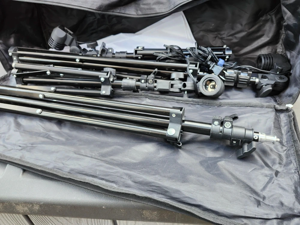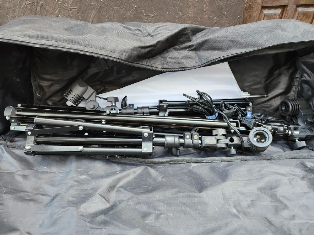3 light stand. 1 umbrella. 1 camera tropod stand. carrying bag