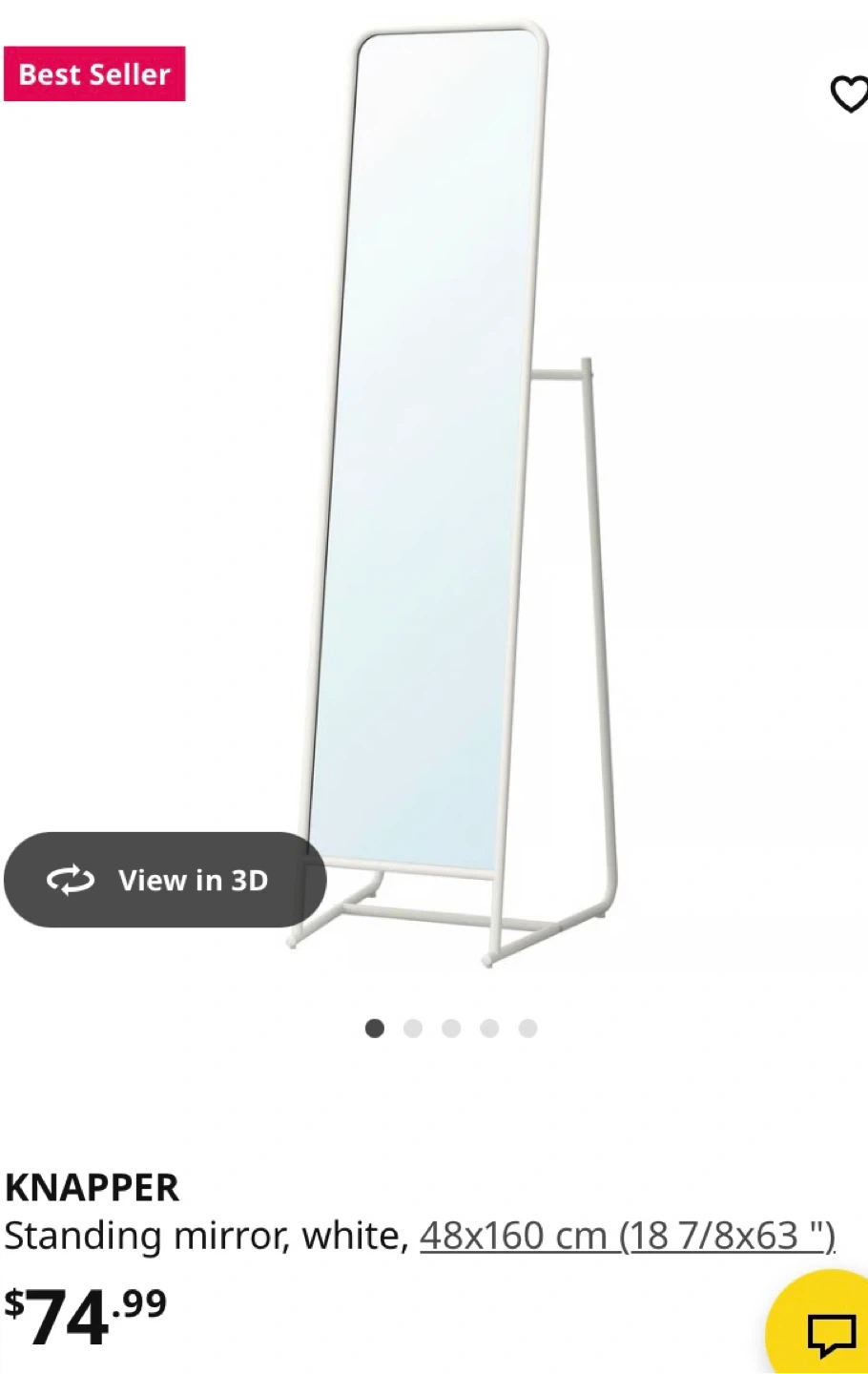 IKEA KNAPPER Standing Mirror - White