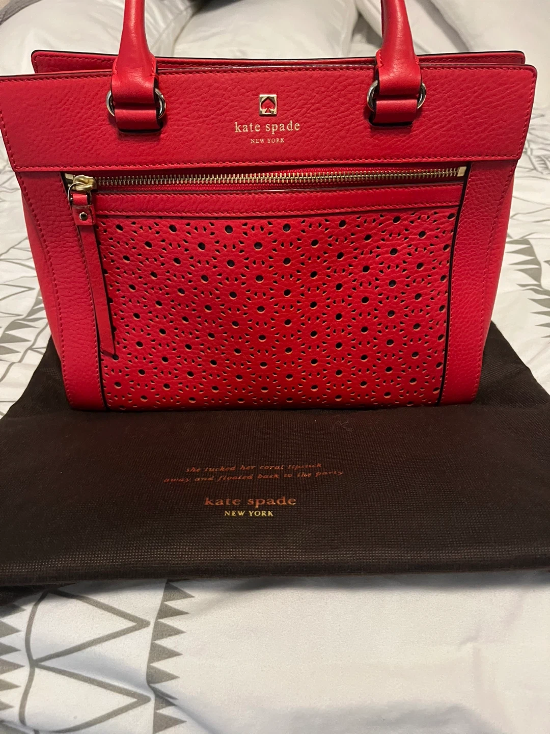 Selling a Kate Spade satchel in a vibrant red! It's in great condition and comes with its original dust bag. Perfect for adding a pop of colour to any outfit!