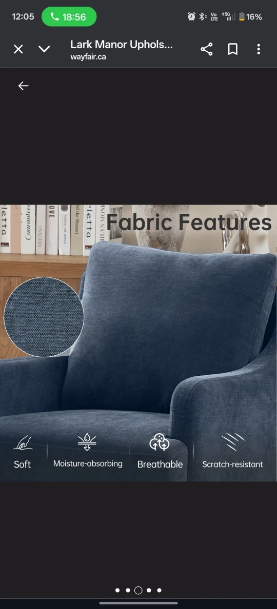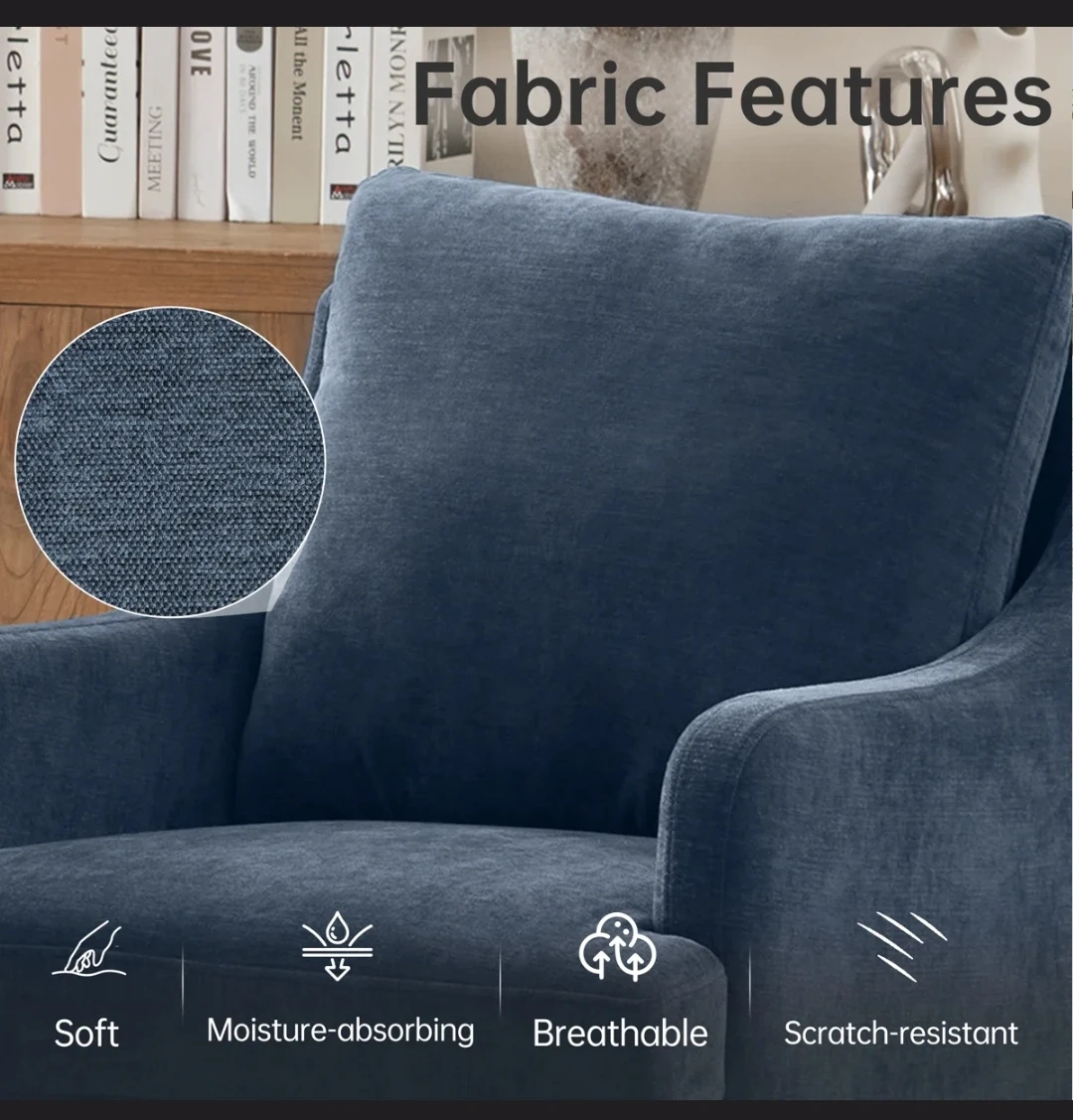 It measures 36.2" in height, 27.6" in width, and 25.2" in depth. The seat is 21" high, and the cushion is 15.2" thick