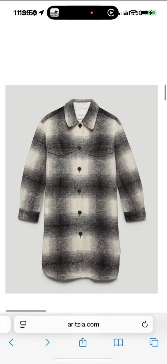 Selling a Wilfred Free shacket in size XS. It's in great condition and perfect for layering during the cooler months! The shacket features a stylish plaid pattern.