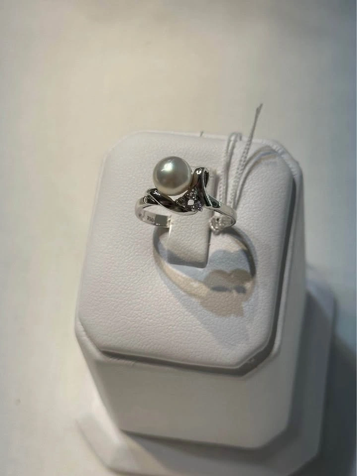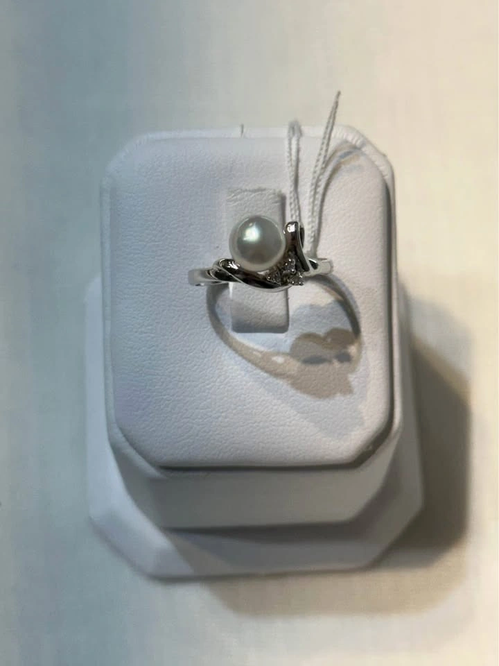 18k White Gold Ring. 2.97 grams. Size 6 3/4. Natural Japanese Pearl and Diamonds.