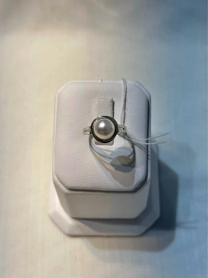 18k White Gold Ring. 2.7 grams. Size 5 1/2. Natural Japanese Pearl.