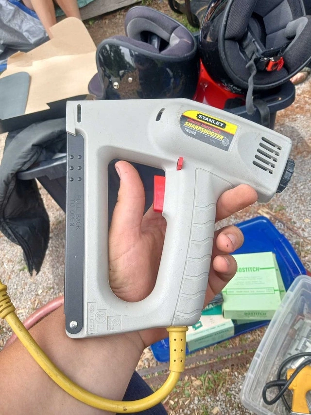This Stanley Sharpshooter TR150HL electric heavy duty staple gun is perfect for various stapling tasks. It's in used condition, but still has plenty of life left for your projects. Here are some details:
