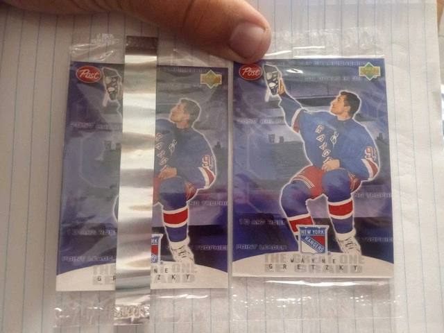 Up for sale are two 2007 Upper Deck Post Cereal Wayne Gretzky hockey cards that celebrate his remarkable career with the New York Rangers. These cards commemorate Gretzky's achievements, including his 50 goals in 39 games and his ten Art Ross trophies. A must-have for any serious hockey card collector!