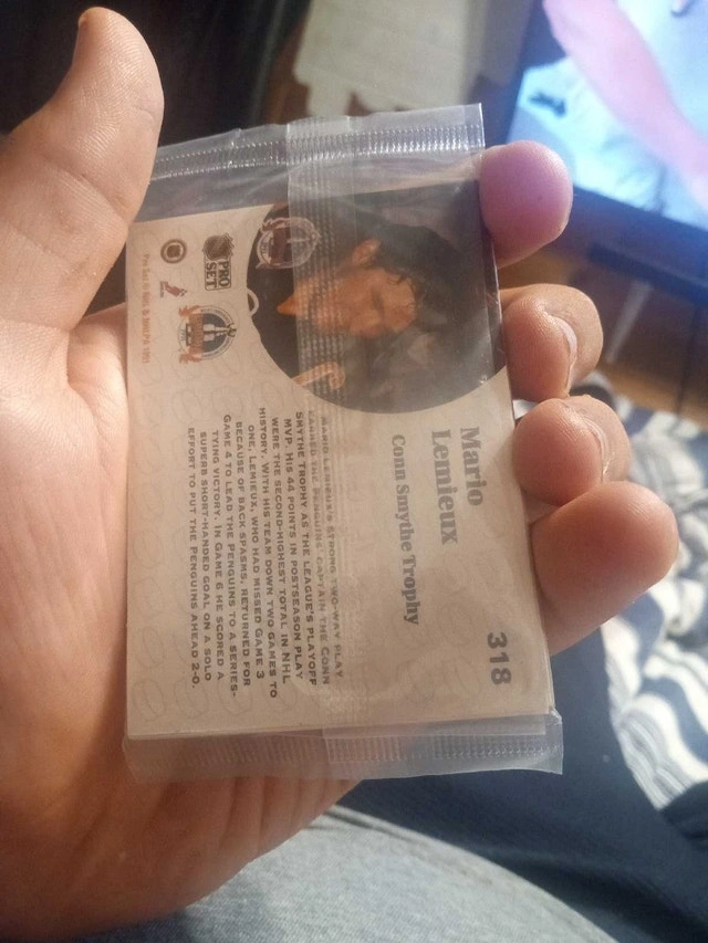This is a new Pro Set hockey card pack from 1991. It features some of the biggest names in hockey, like Mark Messier and Mario Lemieux. This unopened pack is in pristine condition and could contain rare and valuable cards. A great addition for collectors!