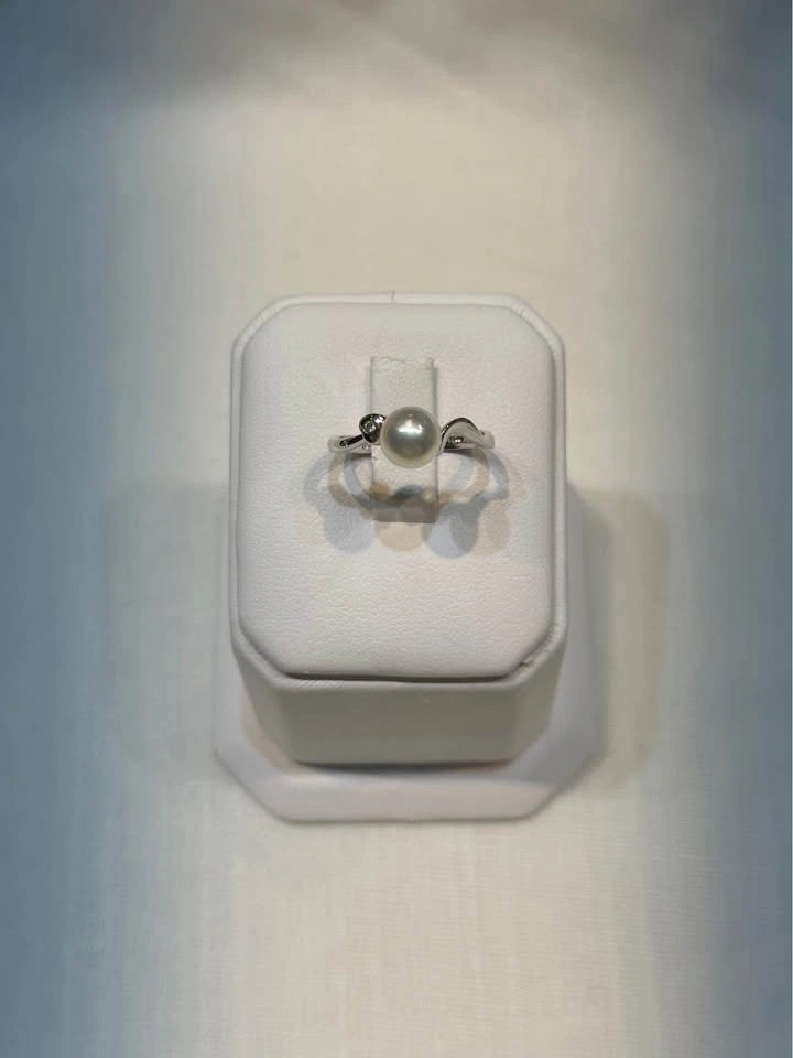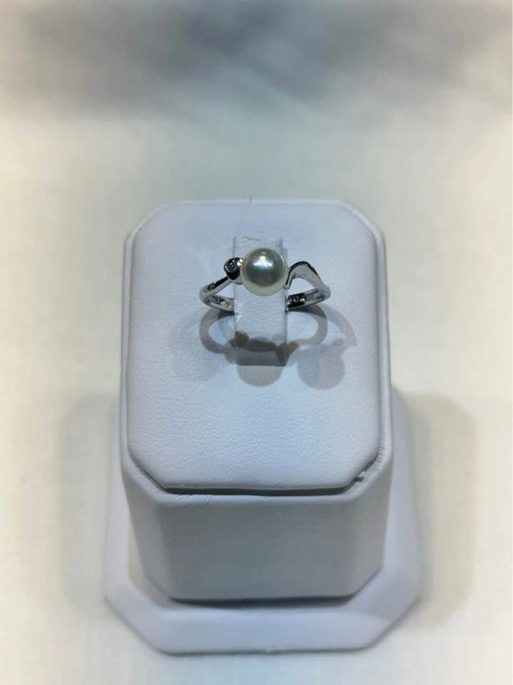 18k White Gold Ring. 2.1 grams. Size 6. Natural Japanese Pearl and Diamond.
