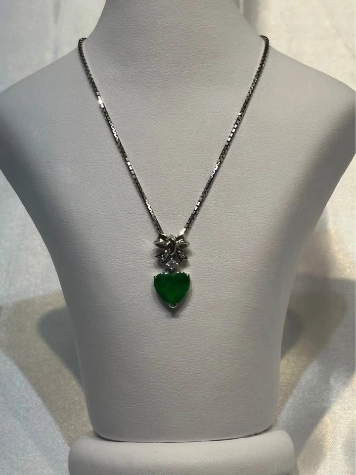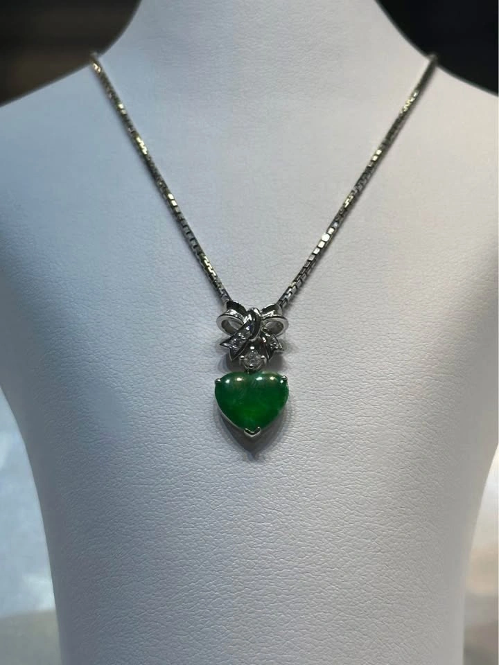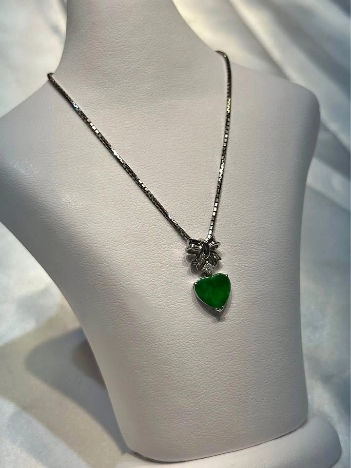 18k gold Jade and Diamond Bow Pendant