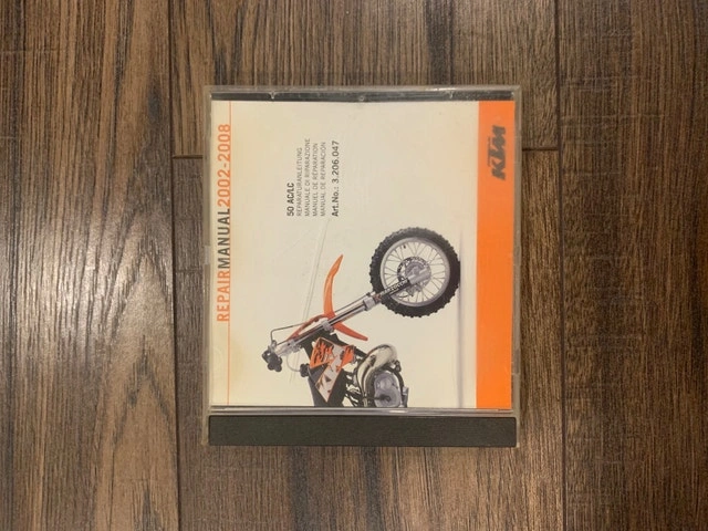 This 2002-2008 KTM 50 AC LC Repair Manual on CD-ROM provides detailed service information, step-by-step repair instruction and maintenance specifications for 2002-2008 KTM 50 AC/LC models. This CD contains the complete service manual, owners manual and WP 3612 BAEM shock absorber manual. System requirements: -Intel PC mind 400MHz -Min. resolution 800×600 pixels -Microsoft Windows 95,NT,98,2000, ME & XP -Acrobat Reader 4.0 In pristine condition. Contact for different offer