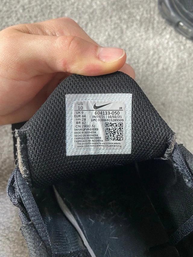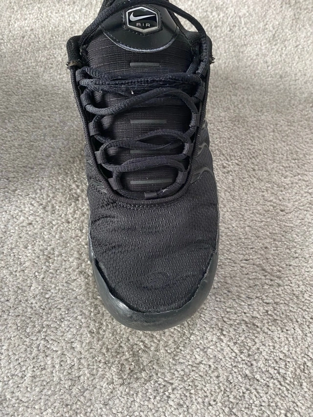 Black Nike Air Max Plus (Nike TN) – Size 10 Men’s – needs sole and toe cap re-glued, otherwise in good condition.