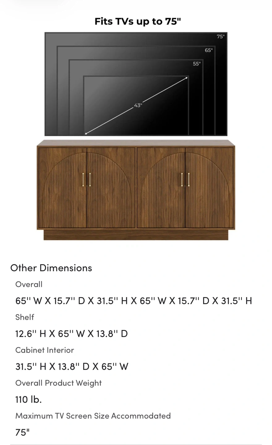 - Cabinet Interior: 31.5" H x 13.8" D x 65" W