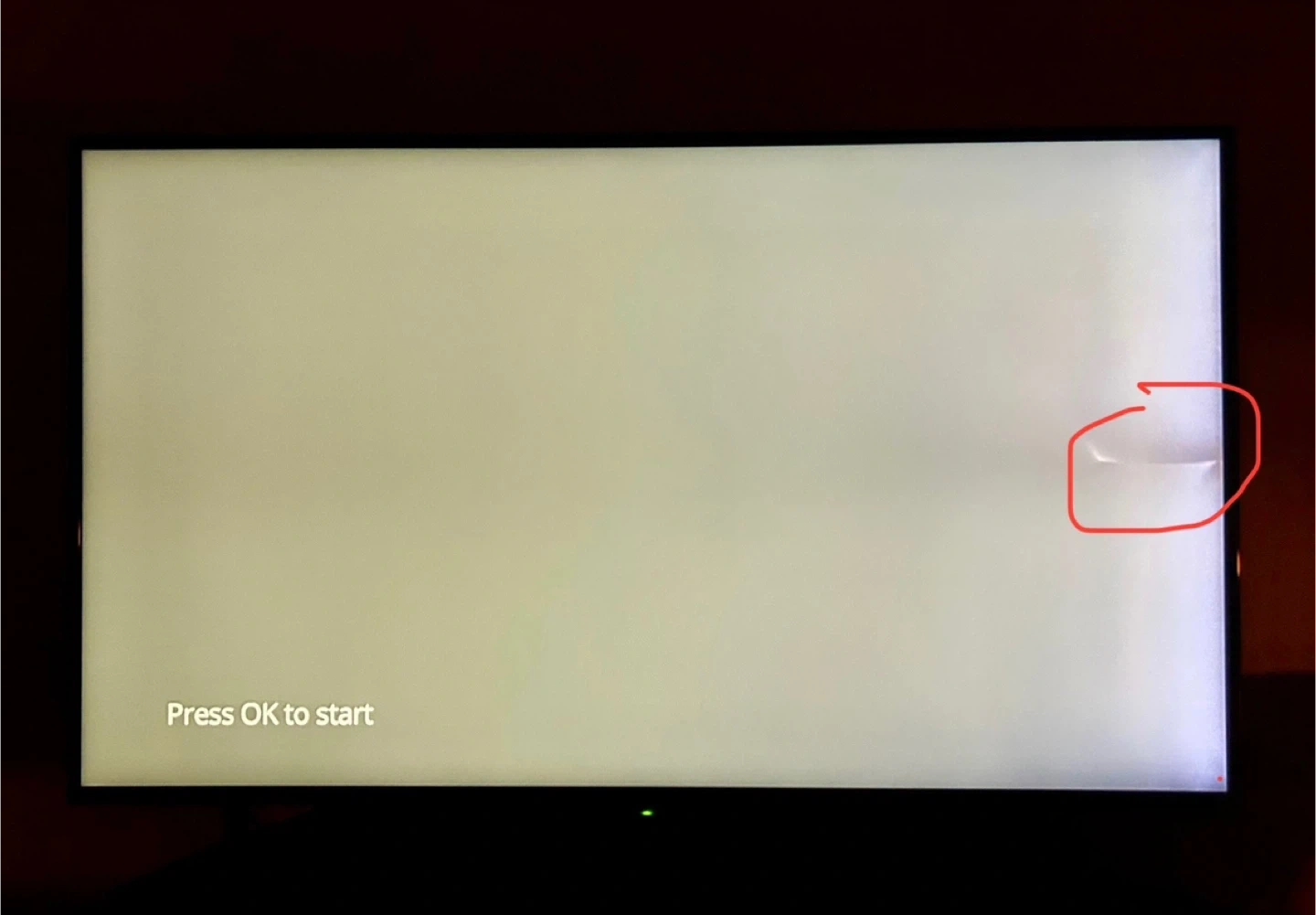 TV works perfectly. Only flaw is a small white line on the right side of the screen (shown in photo). Doesn’t affect overall viewing much.