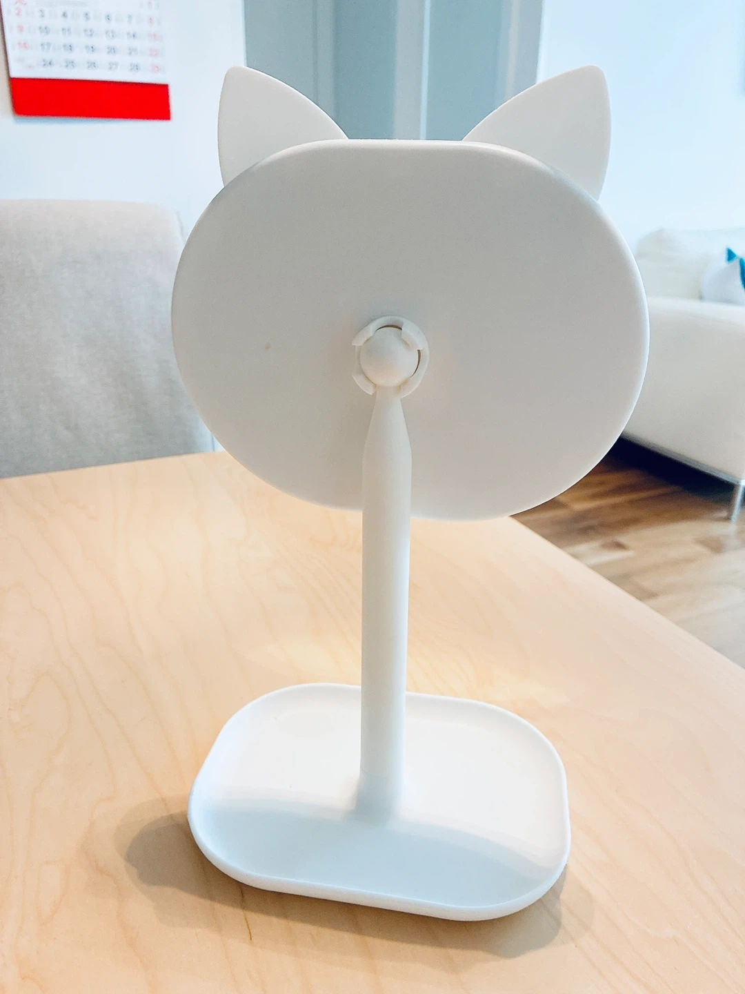 Selling a cute white vanity mirror with cat ears! It's in great condition and perfect for adding a touch of whimsy to your makeup routine or desk. Also available is a small chrome-finished vanity mirror.