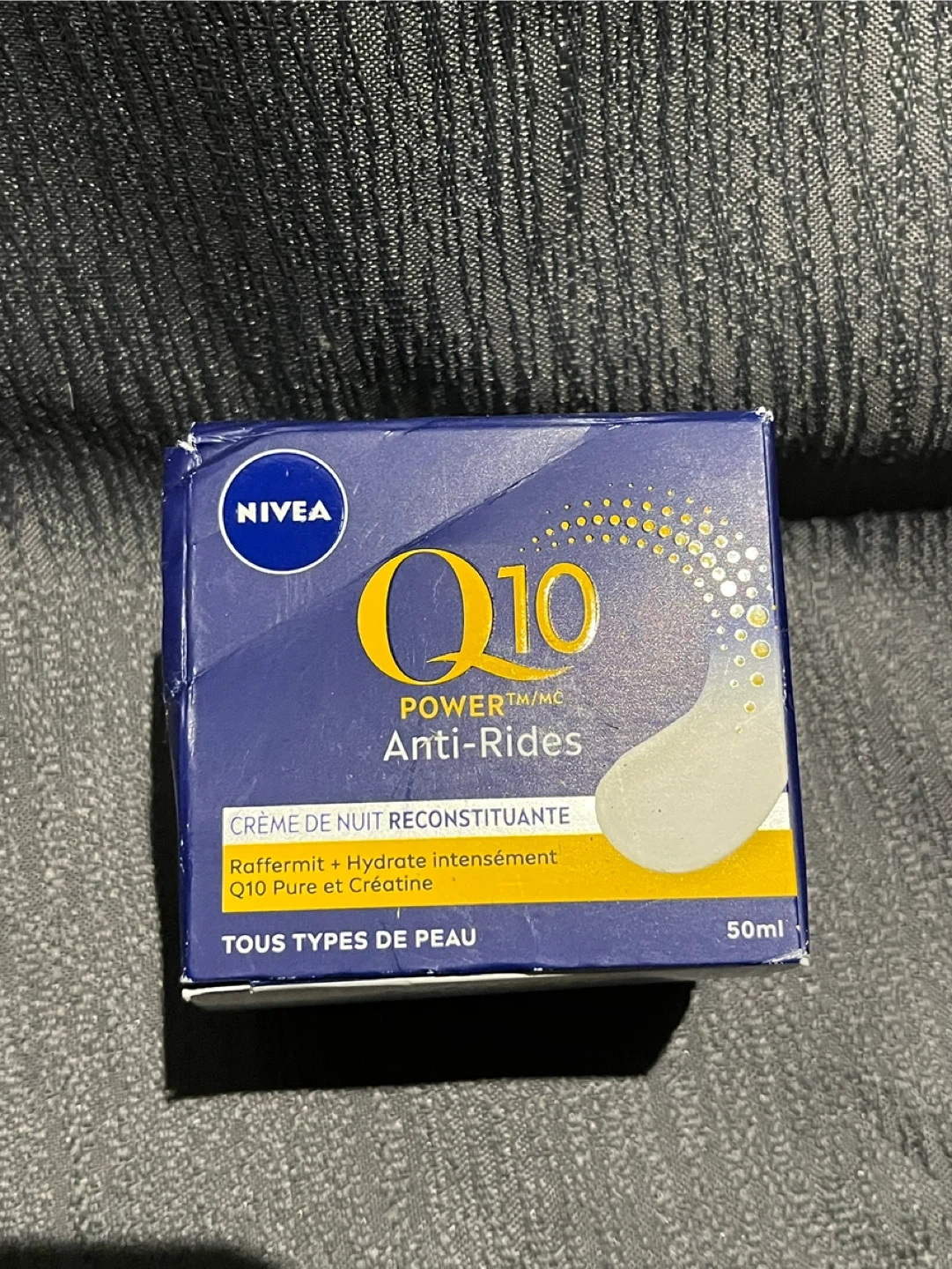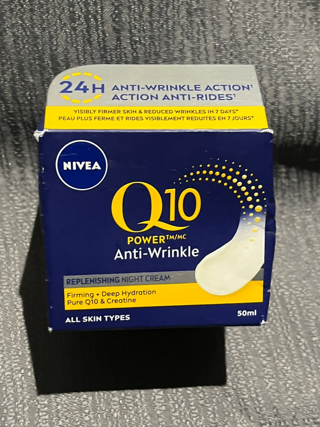 Selling a Nivea Q10 Power Anti-Wrinkle Night Cream. This cream offers firming and deep hydration with pure Q10 and Creatine. It's suitable for all skin types and comes in a 50ml container. Perfect for your nighttime skincare routine!