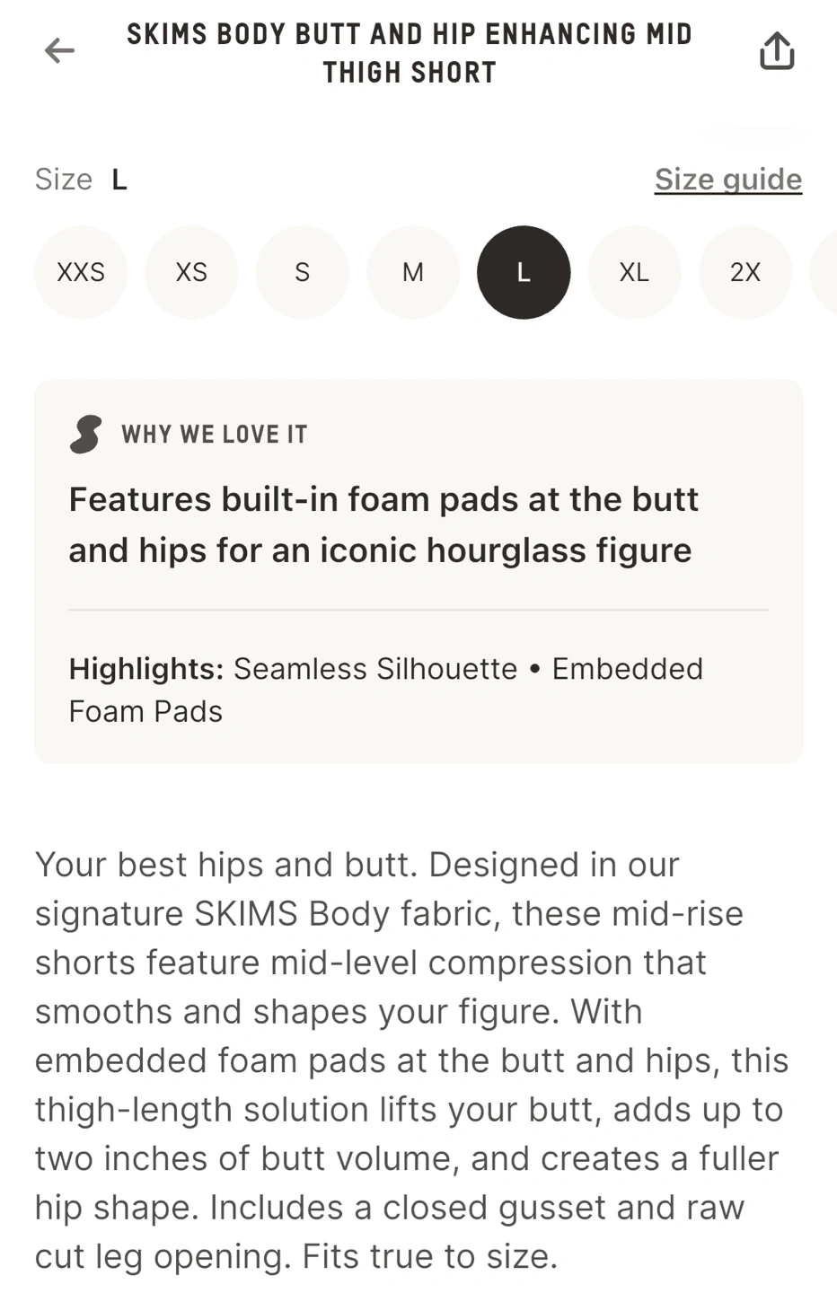 SKIMS Body Butt and Hip Enhancing Mid Thigh Short - L