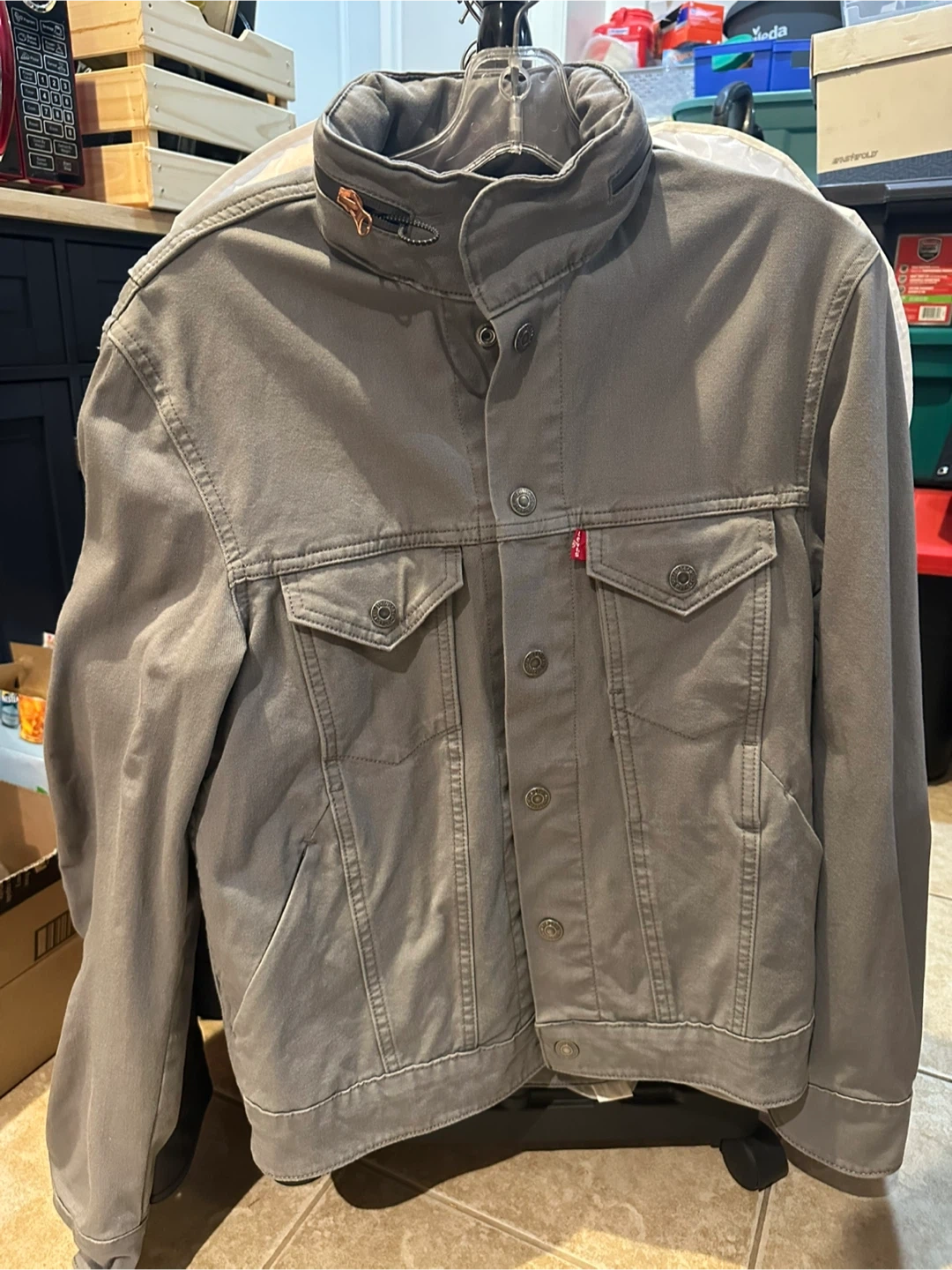 15Levi's grey jacket in great condition! Hoodie hidden in collar. Many pockets.
