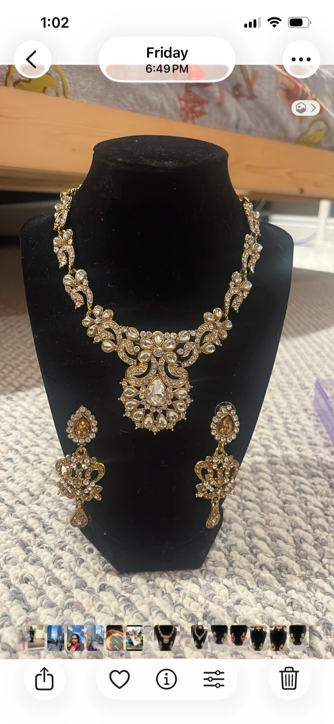 Selling a beautiful jewellery set, including a necklace, earrings, and a headpiece! It's in great condition and would be perfect for a special occasion.