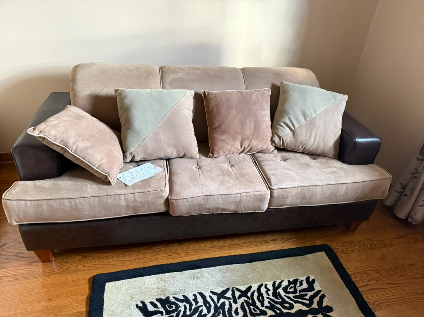 Selling a sofa bed with a pull-out mattress. It's in good condition and perfect for guests or smaller spaces. The mattress features a floral pattern. Great for adding extra sleeping space to your home!