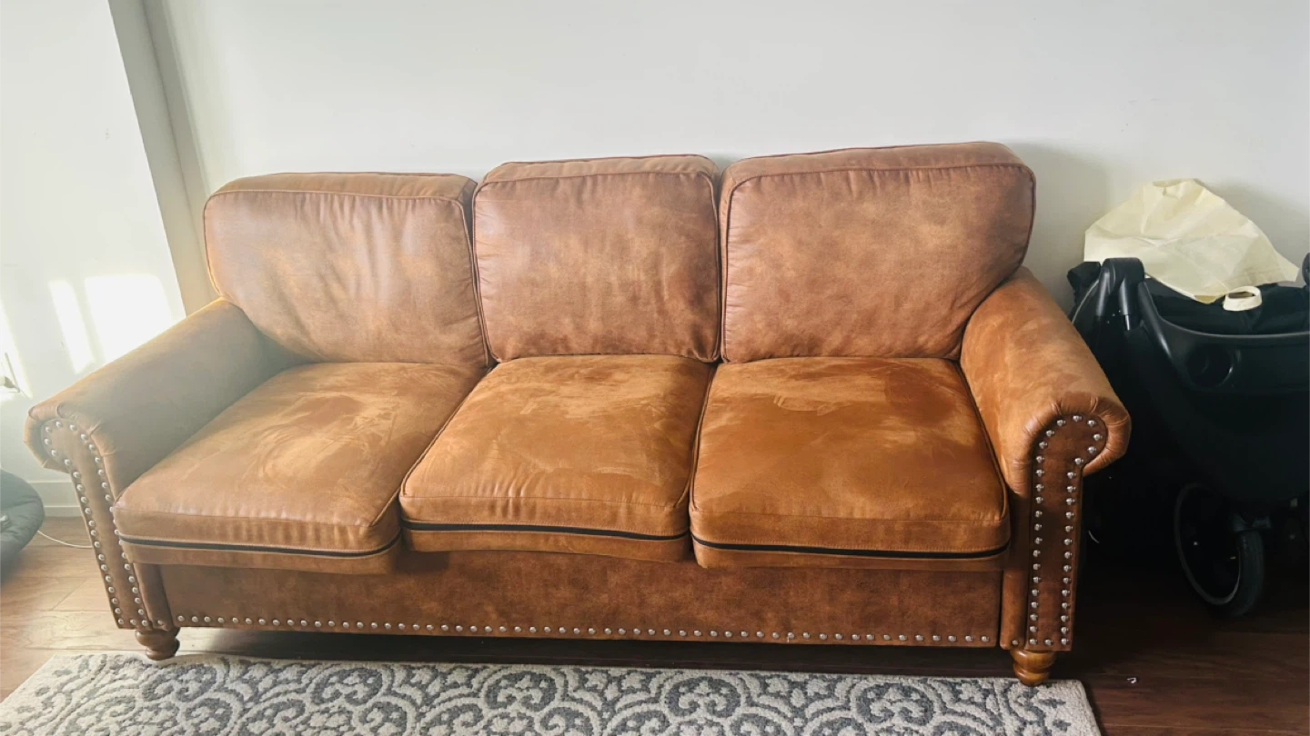 Selling a lovely Abdullah 78" faux leather sofa in a ginger colour! It's a great piece for any living room. Originally bought for $619.99.