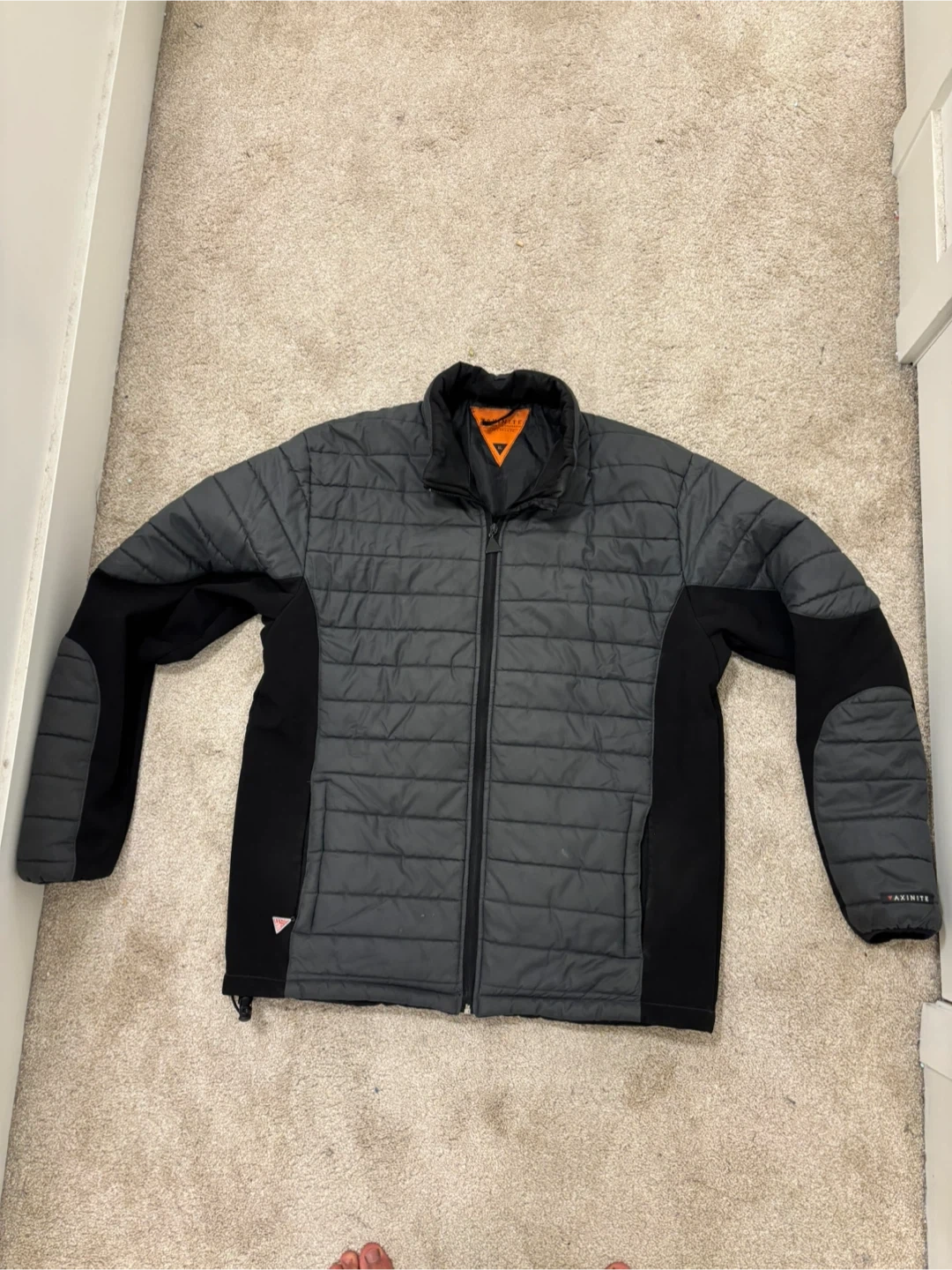 Selling a Puffer jacket in grey and black! It's in great condition and ready for those cooler days. The size is XL.