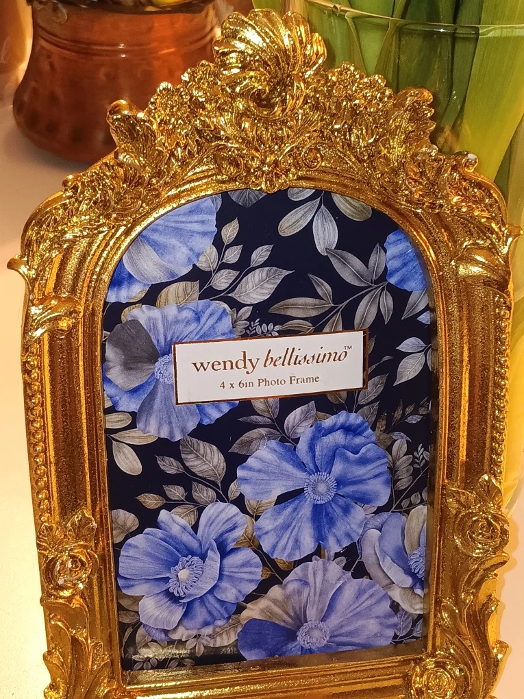 This is a Wendy Bellissimo 4x6 inch photo frame. It has a beautiful gold ornate design, perfect for displaying your favorite memories