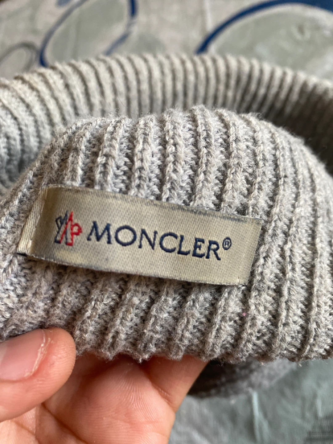 Selling a cozy Moncler beanie in grey! It's in great condition and perfect for keeping warm during the colder months. The classic design and quality material make it a stylish and practical accessory.