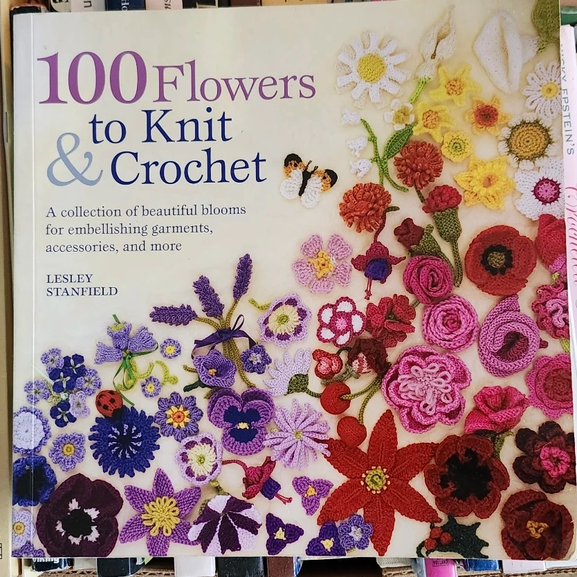 Selling a copy of "100 Flowers to Knit & Crochet" by Lesley Stanfield! It's a collection of beautiful blooms perfect for embellishing garments, accessories, and more