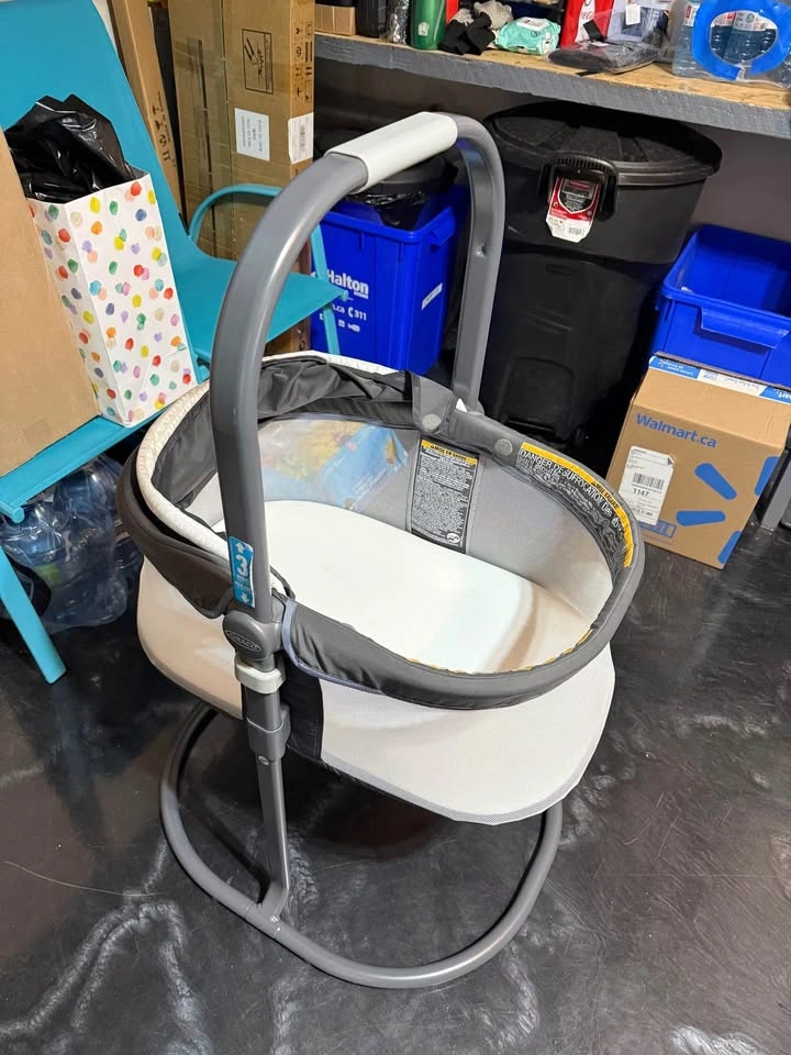Brand new Graco bassinet for sale. You can select multiple height adjustments. It’s portable and can be carried anywhere very easily in the car or inside the house between different rooms. Can be placed on a bed or on the floor. It can also be attached to Graco Baby Pack and play. Pickup Milton
