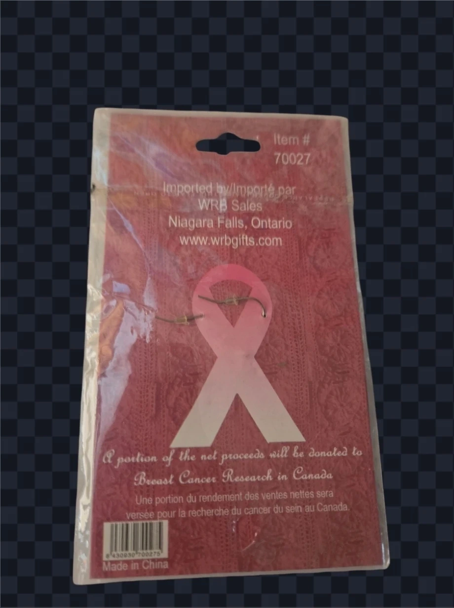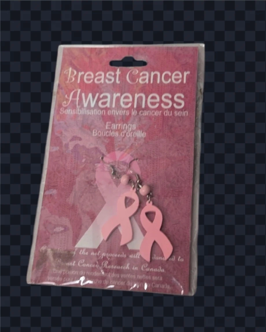 Brand new Breast Cancer Awareness earrings still in the original packaging! A portion of the net proceeds will be donated to Breast Cancer Research in Canada
