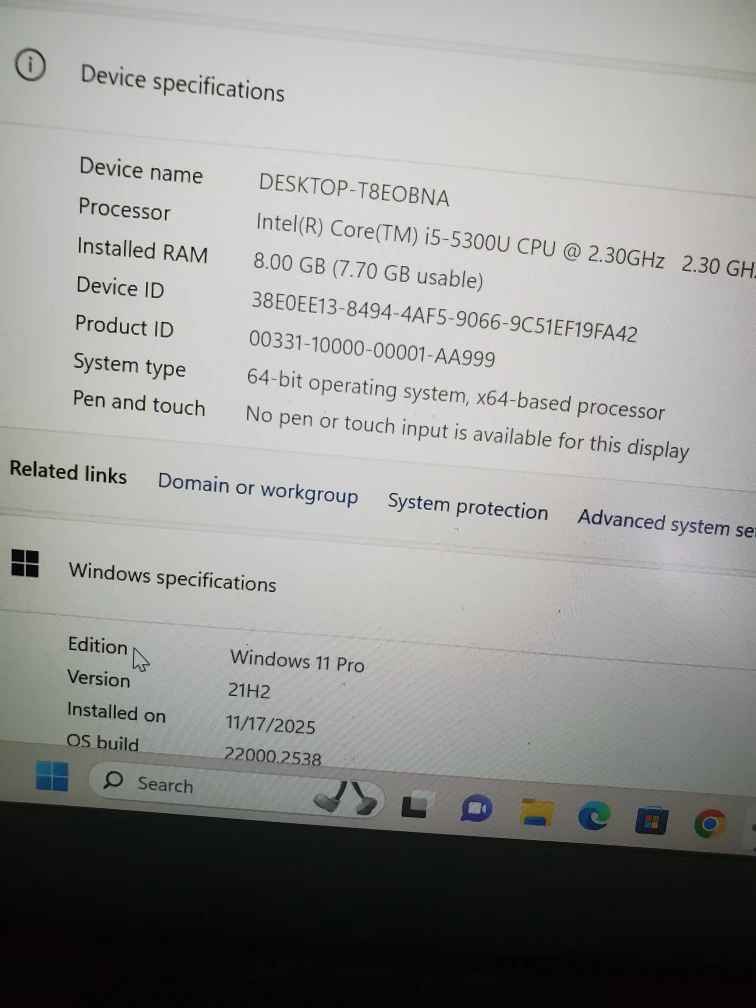 Intel core i5-5300u @ 2.6ghz