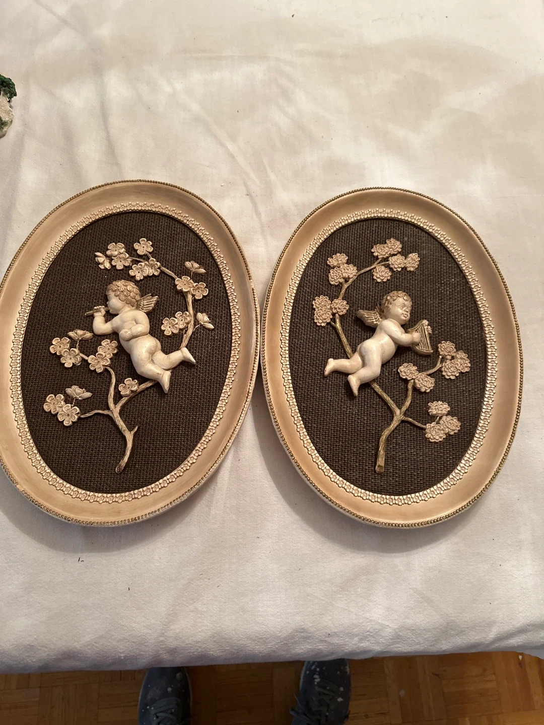 Selling a set of two vintage wall hangings from Concrete Sculpture Art. These charming pieces feature an angel design and are perfect for adding a touch of vintage charm to your home decor. Made in Canada, these wall hangings are ready to bring a unique touch to your walls
