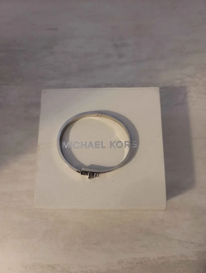 Selling Michael Kors stainless steel MK logo bangle bracelet in silver-tone with pavé crystals. Originally bought for $191.81.