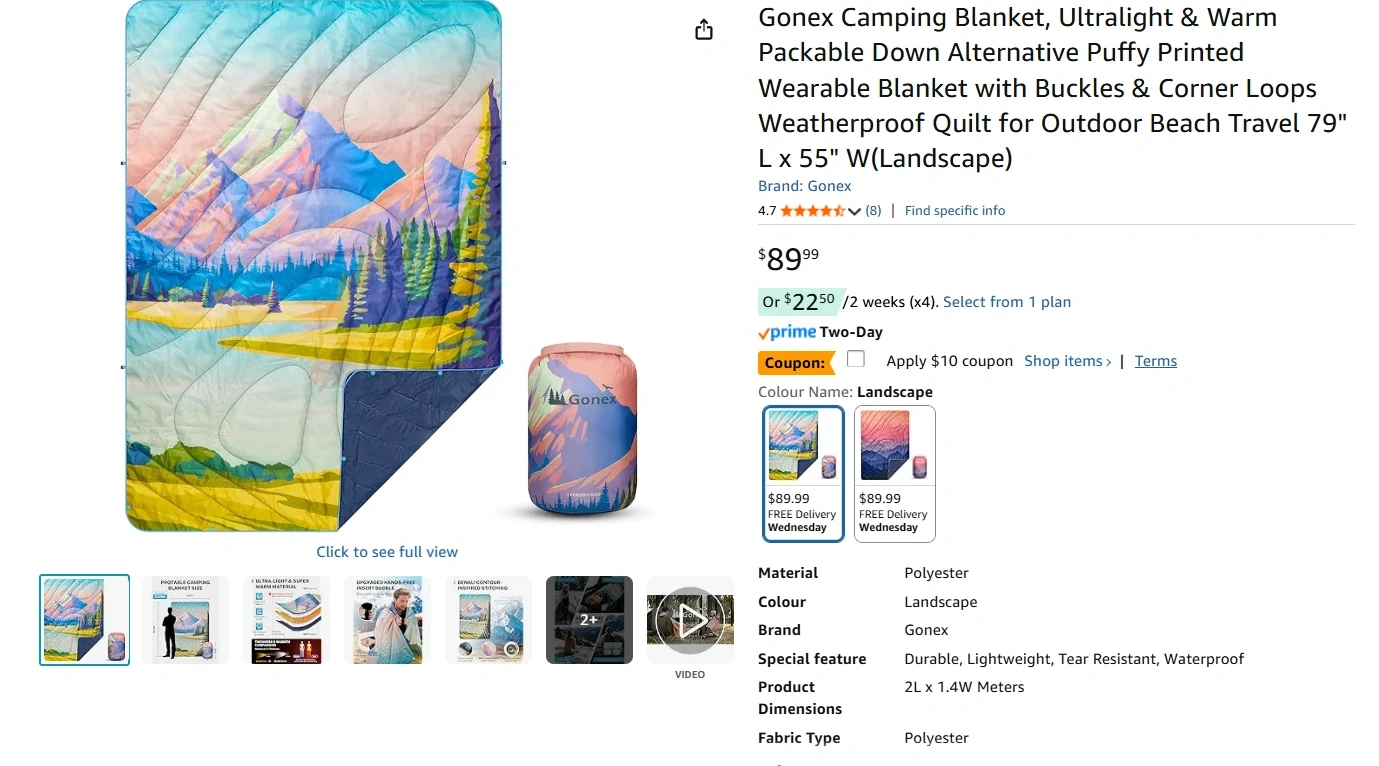 Camping Blanket, Ultralight & Warm Packable Down Alternative Puffy Printed Wearable Blanket with Buckles & Corner Loops Weatherproof Quilt for Outdoor Beach Travel 79" L x 55" W(Landscape), Brand New in the Box/Sealed