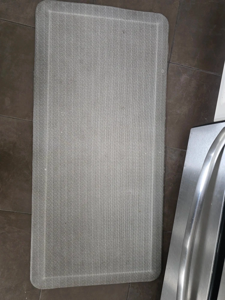 Selling a grey kitchen mat in good condition! It's perfect for adding a bit of comfort and style to your kitchen space. It's a great size for in front of the sink or stove. Come grab it!