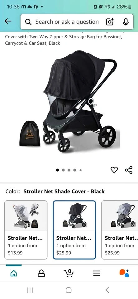 Orzbow 2-in-1 Baby Mosquito Net with UPF50+ Sunshade for Stroller, Breathable Stroller Mosquito Netting Privacy Cover with Two-Way Zipper & Storage Bag for Bassinet, Carrycot & Car Seat, Black