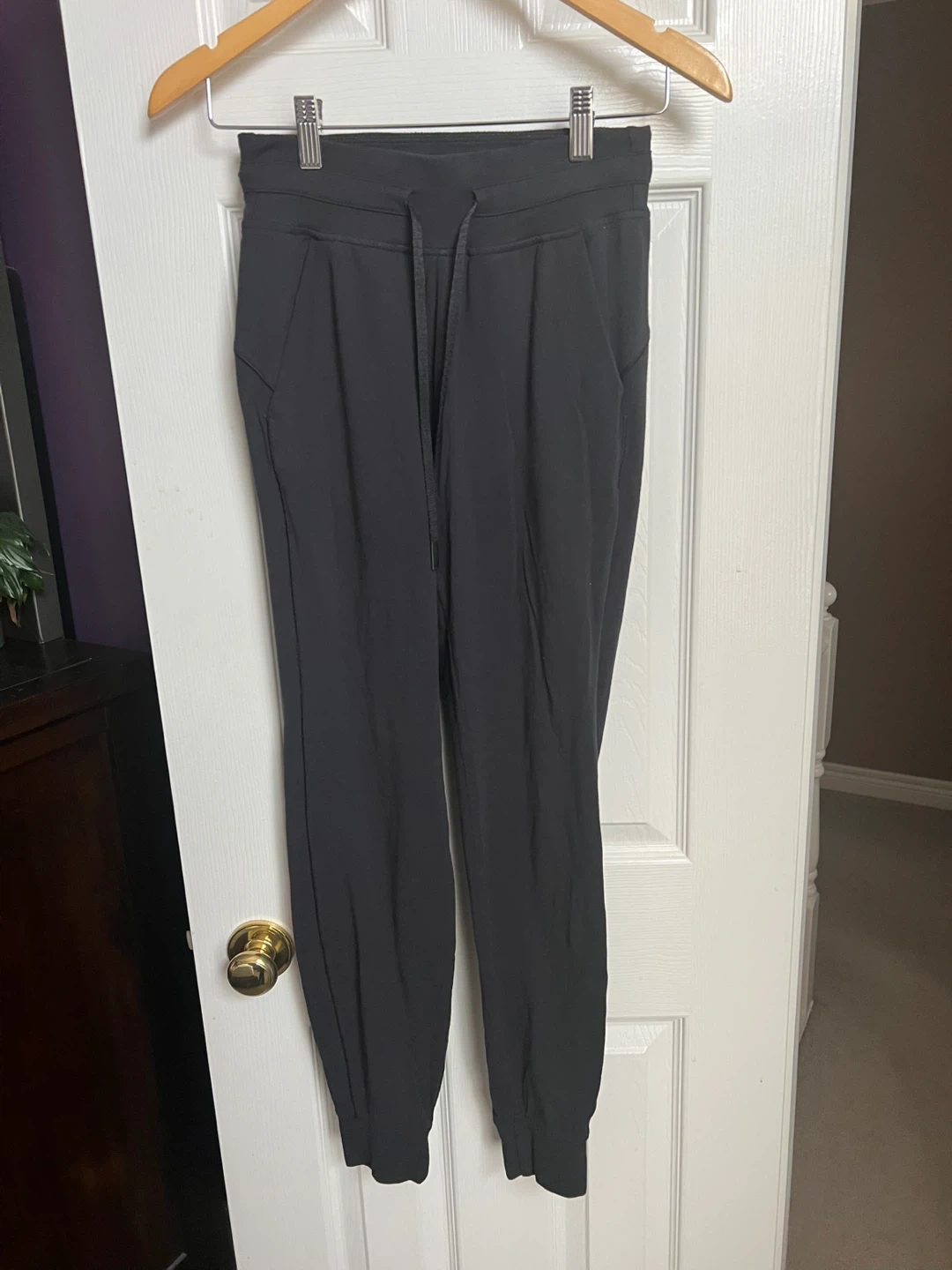Selling a pair of Lululemon jogger pants in size 2. They're in great condition and ready for a new home! The material is comfortable and perfect for workouts or just lounging around