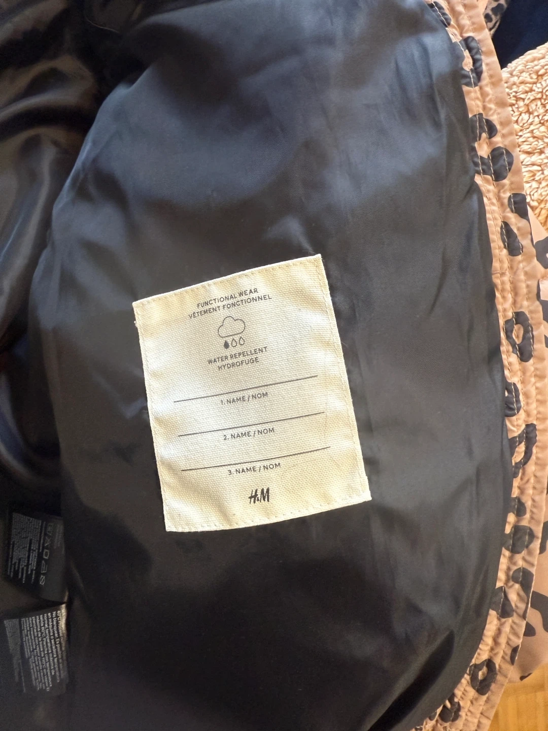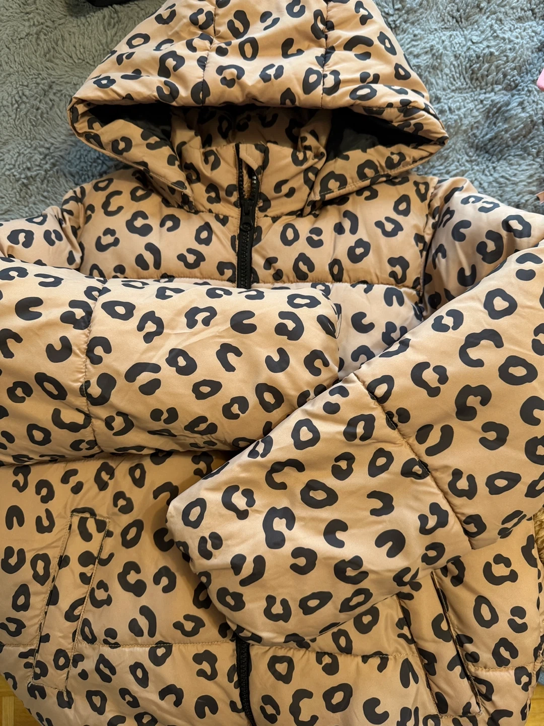 Cute H&M puffer jacket with a fun leopard print! It's a size 8-10 (EUR 134/140, US 8/10, CA 8-10A, CN 140/68, MX 8-10A, AUS 9-10, KR 9-10Y). Perfect for keeping your little one warm and stylish this winter!