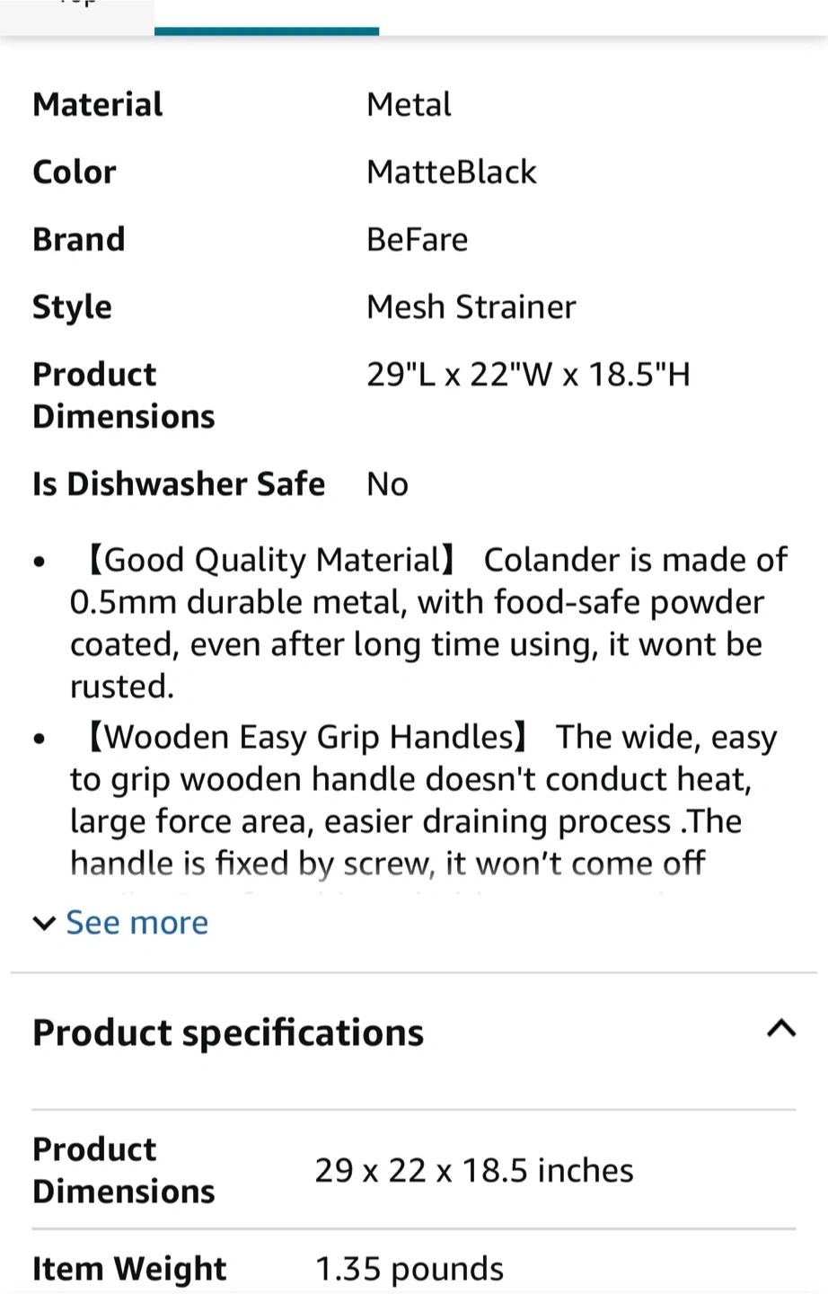BeFare Large Metal Colander with Wood Handle & Stable Base
