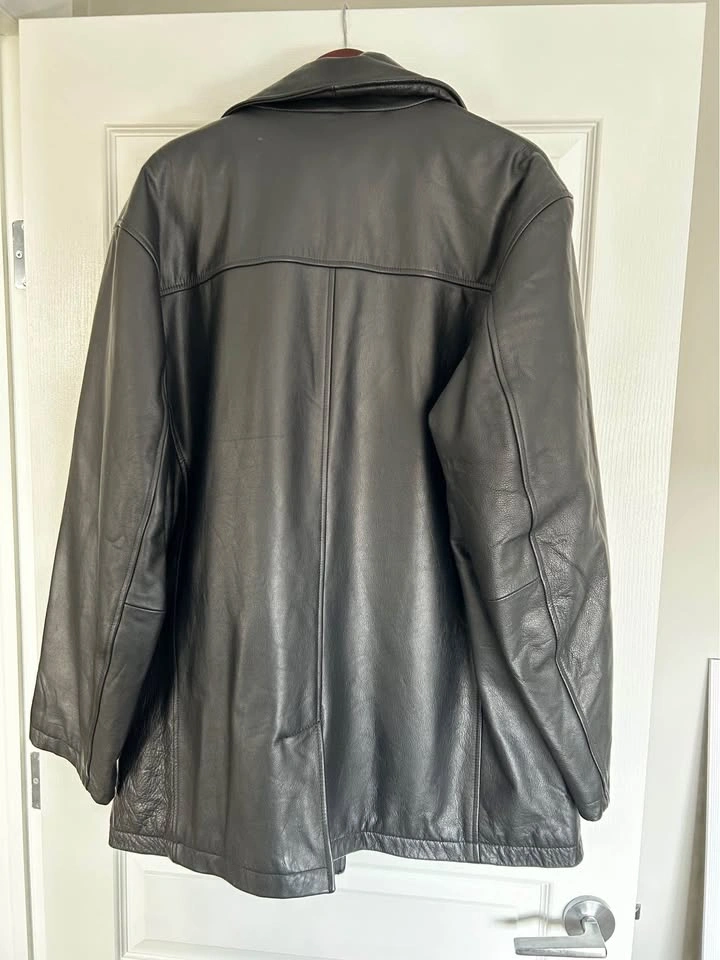 New mens black genuine leather jacket from the GAP, size L. In amazing condition! Only selling as was gifted but wrong size.