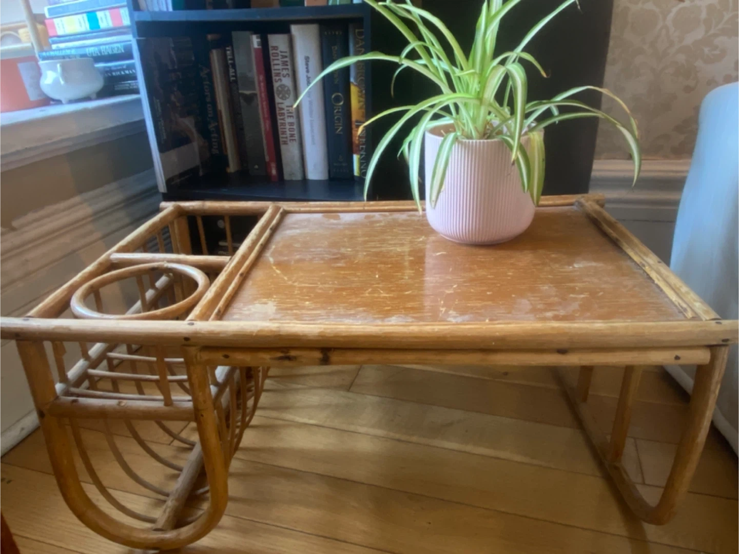Selling a vintage rattan tray table. Original design. It's perfect as a display shelf, for breakfast in bed or working from the couch!