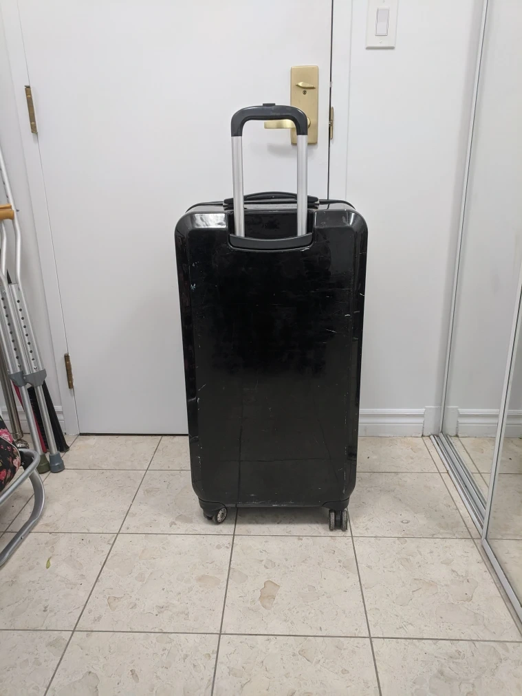 Selling a black Calvin Klein luggage. It has some scratches and signs of wear, but it's still in good working condition and ready for your next trip!