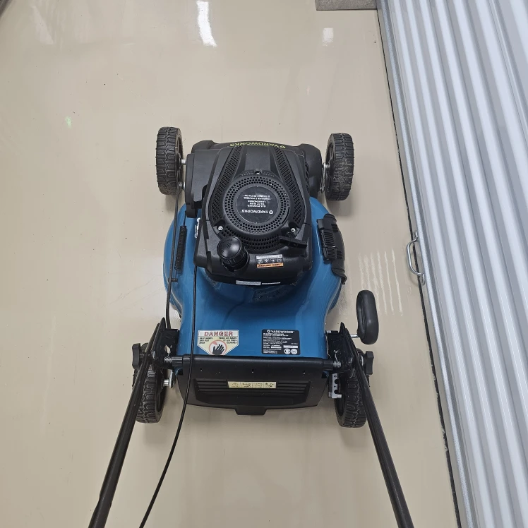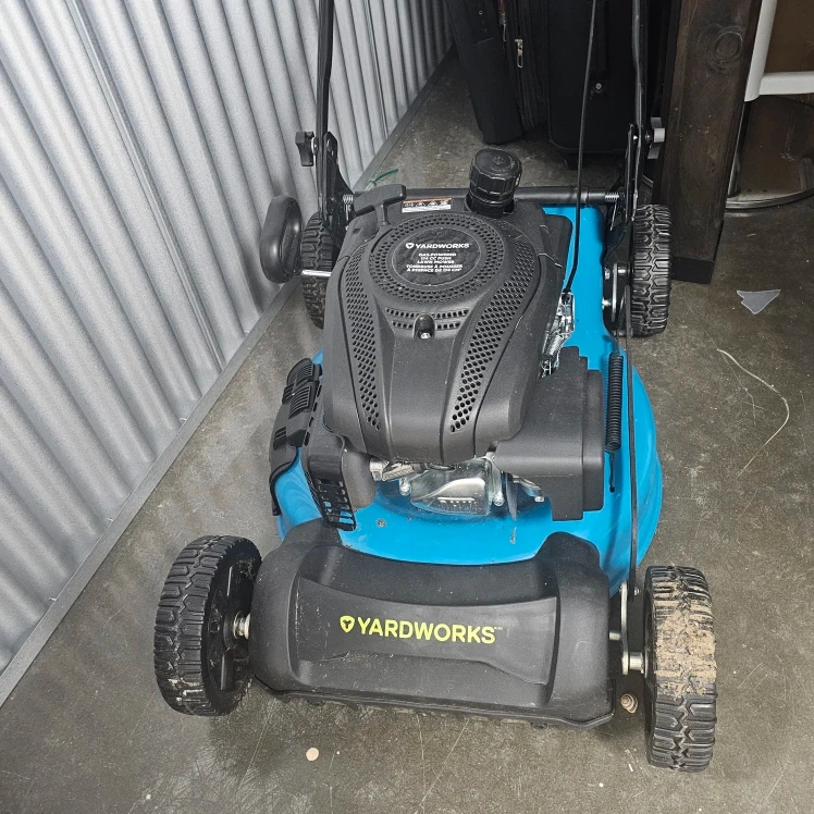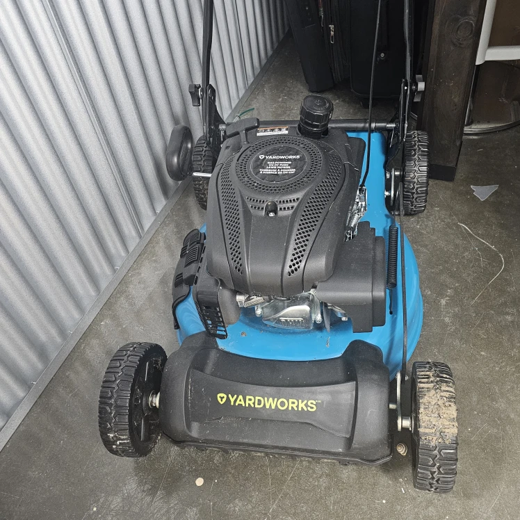 Basically brand new. Used 3X on small back yard. Bag brand new, never used. Now in condo. Yardworks lawn mower that's in good working condition! It comes with the grass catcher attachment, making lawn maintenance a breeze. Ready for a new home to keep your yard looking sharp
