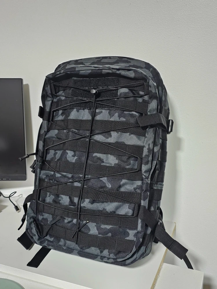 Selling a brand new tactical backpack with a cool camo pattern. It's ready for your next adventure or daily commute! Lots of straps and buckles for secure carrying.