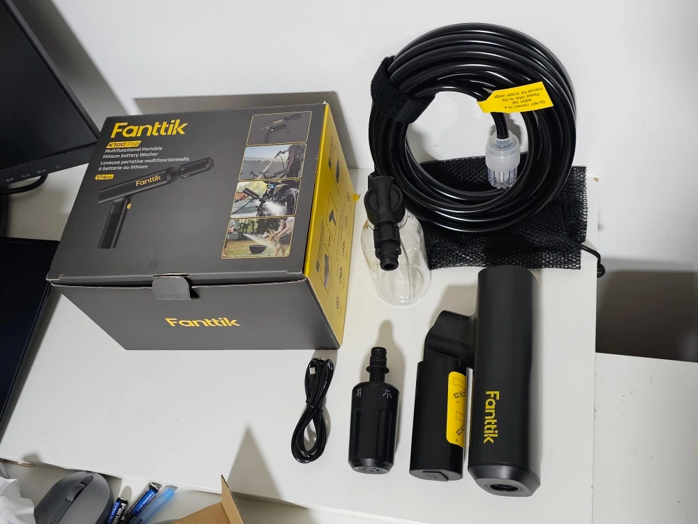 Selling a brand new Fanttik K100 Flip portable power washer. It's brand new box and comes with the original box! This is a wireless and foldable power washer that's super easy to use and store. It comes with a cable and is portable, making it great for a variety of uses.