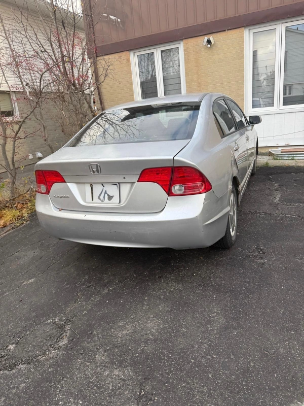 Selling a silver Honda Civic sedan. It shows signs of use and wear, as seen in the photos.