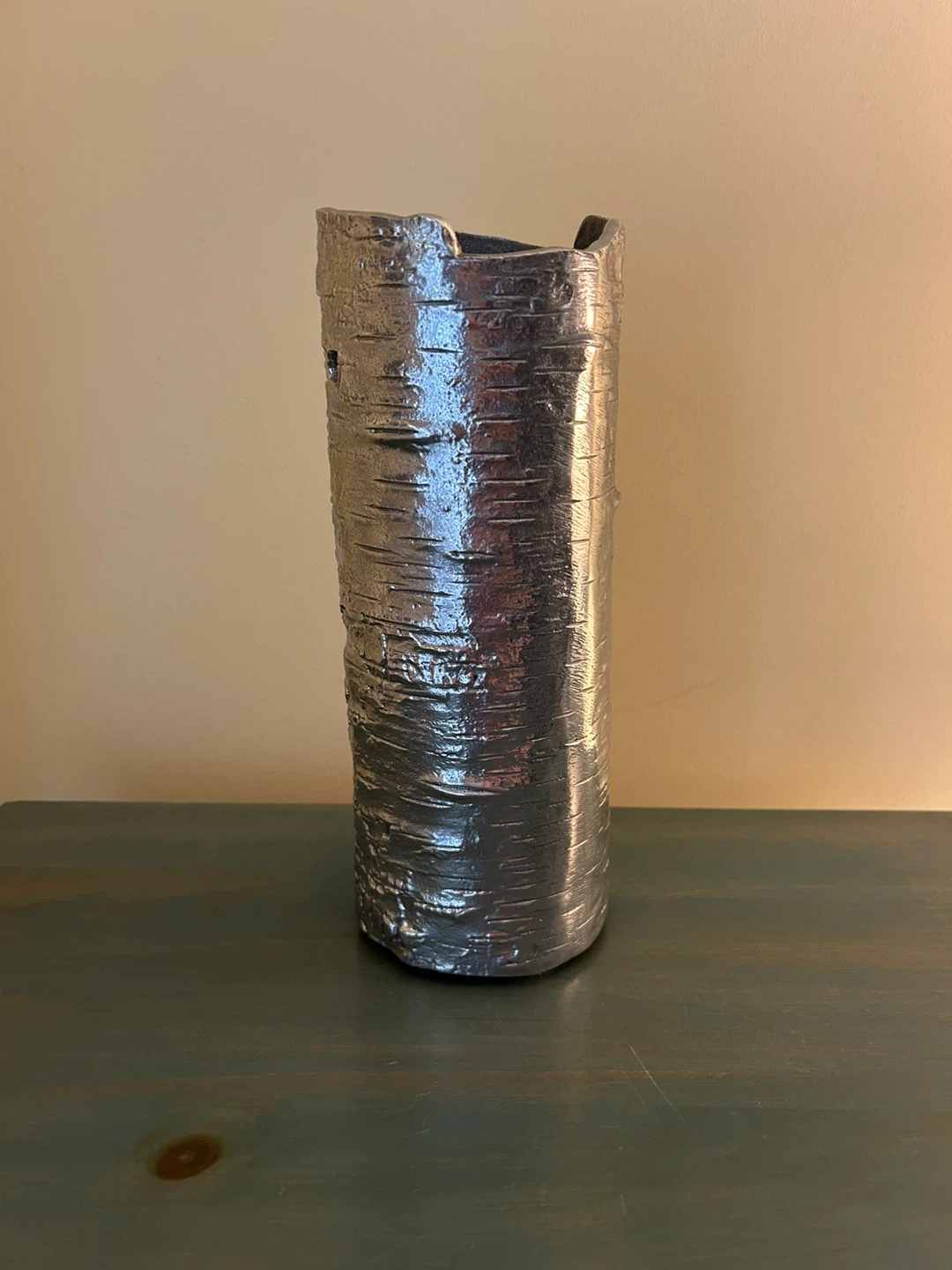 Michael Aram Bark & Branch Decorative Flower Vase. Aluminum Intricate design of tree barks adds a unique touch. Perfect for displaying your favourite flowers or as a unique decorative piece. 3.75”x 10”h