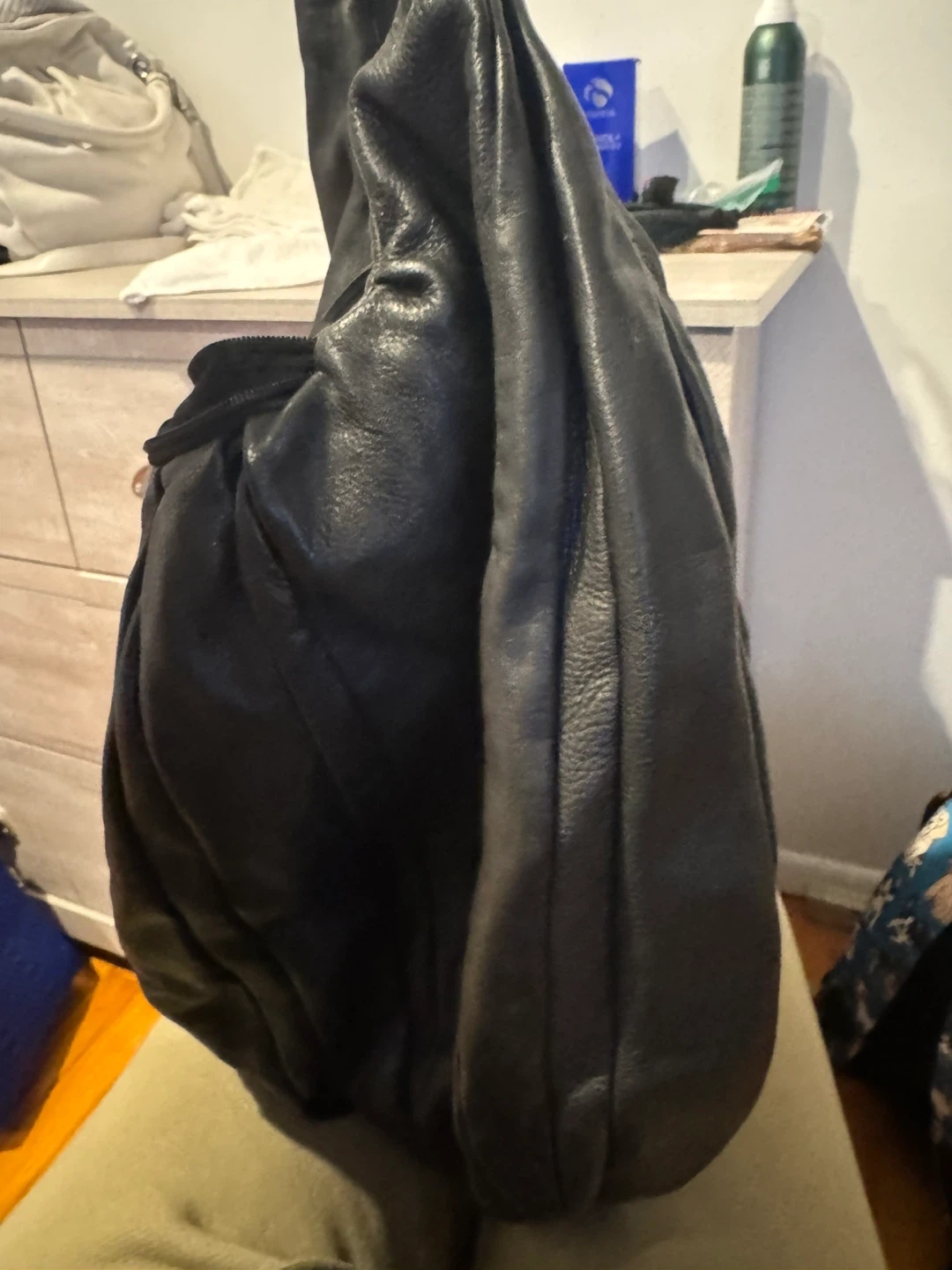 Selling a stylish black leather hobo bag! It's in great condition and has a unique, slouchy design. Perfect for everyday use and carrying all your essentials. The material is soft and supple leather, which makes it comfortable to carry around. Feel free to ask any questions!